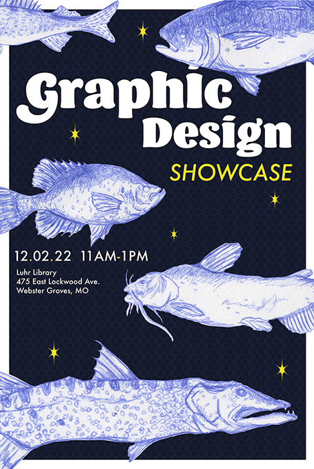 Poster & social media graphic work made to promote Webster University's 2022 Graphic Design Showcase. Poster designs were made for physical & digital signage. What inspired this design was my understanding of the unique differences each designer had while harmonizing both traditional and digital methods of creation.
